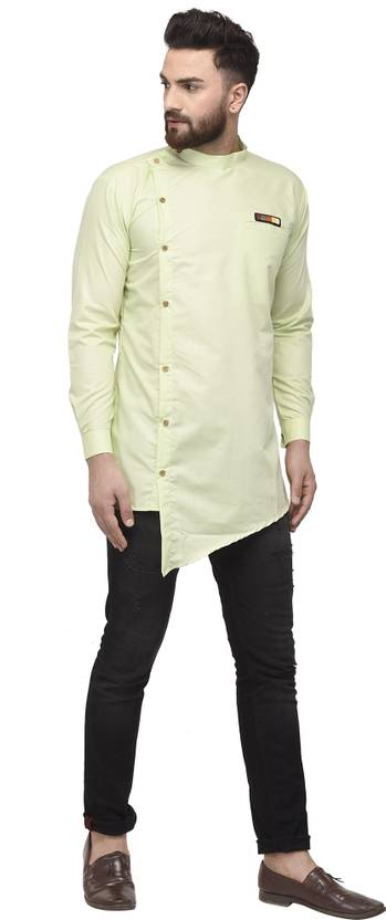 SAIFOO Men Solid Asymmetric Kurta (Green)
