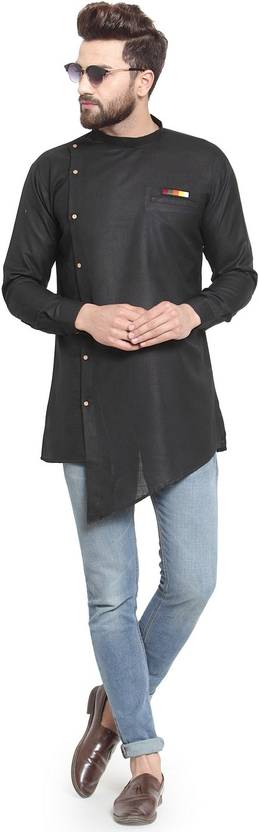 SAIFOO Men Solid Asymmetric Kurta (Black)