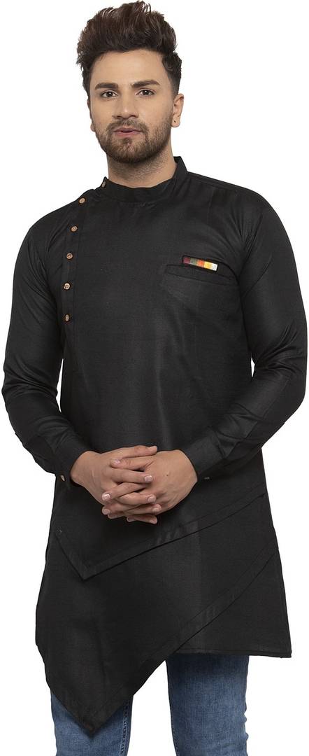 ABH Lifestyle Men Solid Trail Cut Kurta (Black)