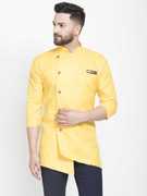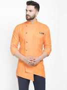 Men Solid Cotton Blend Asymmetric Kurta (Multicolor)