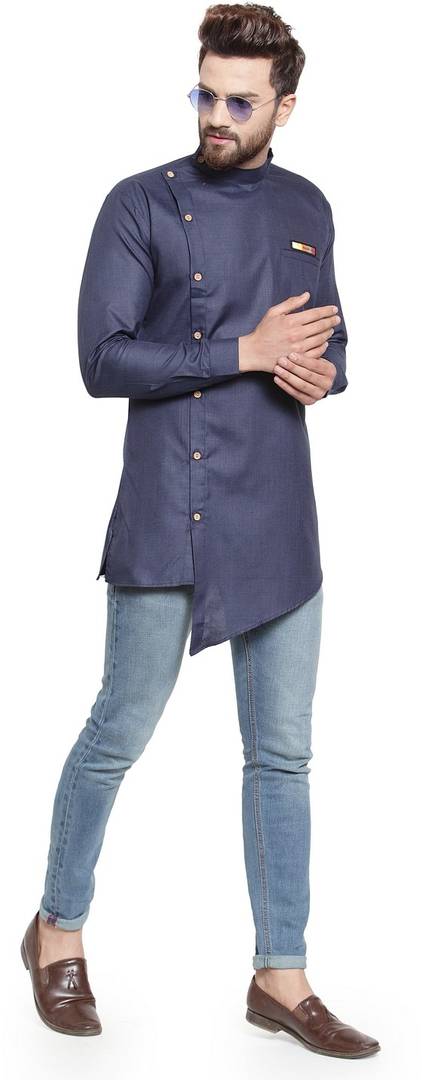 SAIFOO Men Solid Asymmetric Kurta (Blue)