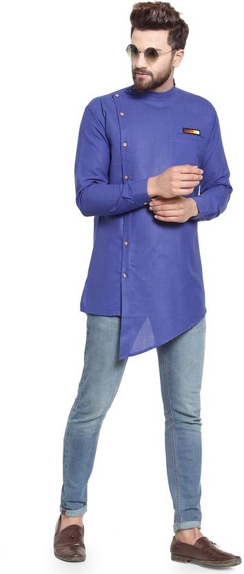 SAIFOO Men Solid Asymmetric Kurta (Blue)