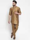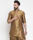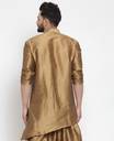 SAIFOO Men Solid Dupion Silk High Low Kurta (Gold)