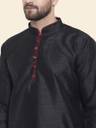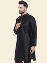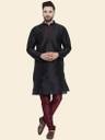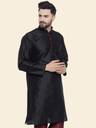 kaifoo Men Solid Dupion Silk Straight Kurta  (Black)