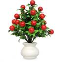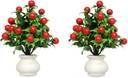 Saikara Collection Red, Green Wild Flower Artificial Flower with Pot (15 inch, Pack of 2, Flower Bunch)