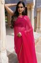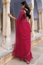 SainiVastra presents this chiffon saree, made from lightweight fabric that drapes beautifully and feels soft, comfortable, and easy to wear. With fine detailing and a rich zari border, it is perfect for weddings, festive celebrations, family functions, parties, and even for a classy everyday look. The saree comes with an unstitched 80 cm blouse piece, designed with embellished butti zari work to complete your traditional style.