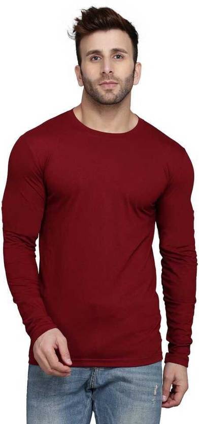 SAIOM Solid Men Round Neck Maroon T-Shirt