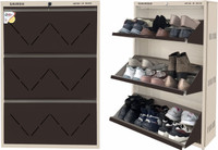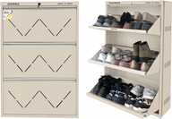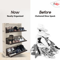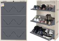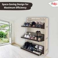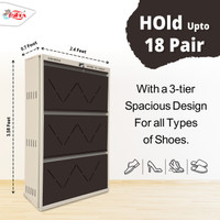 Boasting up to three tiers, each with double shelves, this shoe rack can hold up to 18 pairs, supporting efficient storage and organisation of various shoe types, such as formal wear, casual footwear, and sandals. Its pull-down door mechanism offers easy access while maintaining a tidy appearance. Moreover, with an integrated locking feature, this rack can offer added peace of mind in both shared and open spaces, while keeping contents secure and dust-free.
