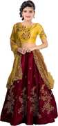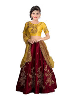 saiyaara fashion Girls Lehenga Choli Ethnic Wear Embroidered Lehenga, Choli and Dupatta Set (Maroon, Pack of 1)