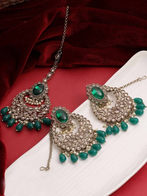 SAIYONI Reverse AD Maangtikka Set |earrings with maang tikka Alloy Earring Set