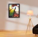 SAJAOHATKE Peacock white Blue Digital Reprint 13.5 inch x 10.5 inch Painting (With Frame)