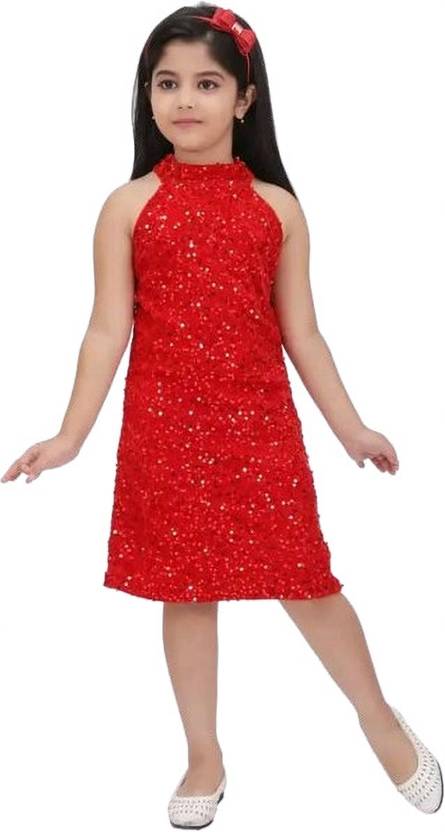 Sajjat Dresses Girls Above Knee Party Dress (Red, Sleeveless)