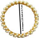 The bangle is a bracelet that is worn on the upper arm. It is made with pearls and has a traditional design that matches the other pieces in the set.