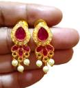 The long tanmani with earrings is a necklace that is designed to be worn lower on the chest, and it comes with matching earrings. The necklace is made with pearls and gold plating, and it features a traditional design that is popular in Maharashtra.