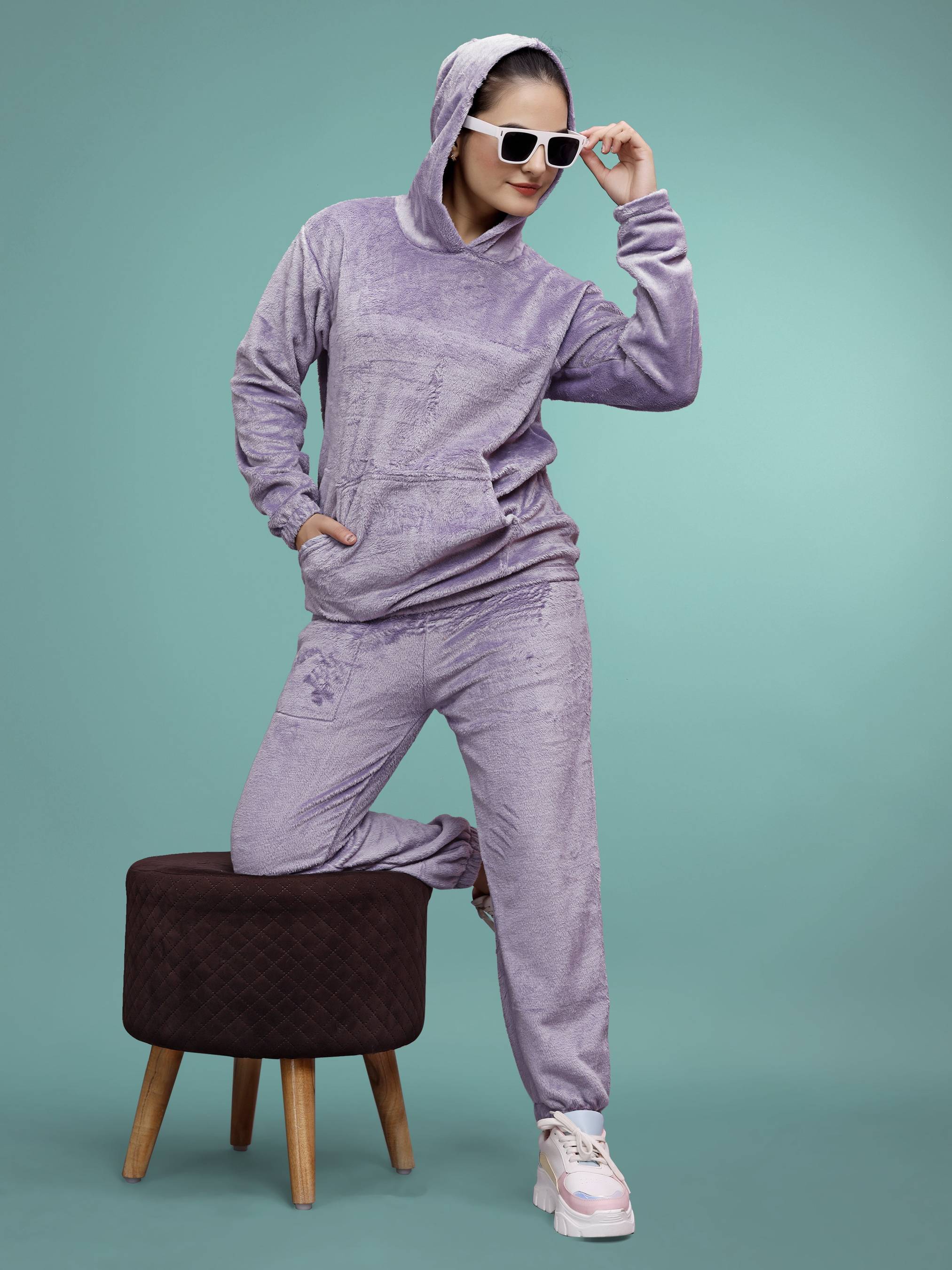 Stay cozy and stylish this winter with our Women's Winter Wear Co-Ord Set, crafted from a luxurious blend of fleece and wool for unmatched softness and warmth. This versatile set includes a top and bottom designed for ultimate comfort, featuring a convenient side pocket for small essentials like keys or your phone. The elasticated waistband with heavy stretch on both sides and an adjustable drawstring ensures a perfect fit. Whether you're lounging at home, traveling, practicing yoga, working out, attending parties, or even using it as chic sleepwear, this co-ord set effortlessly combines functionality and elegance to suit every occasion.