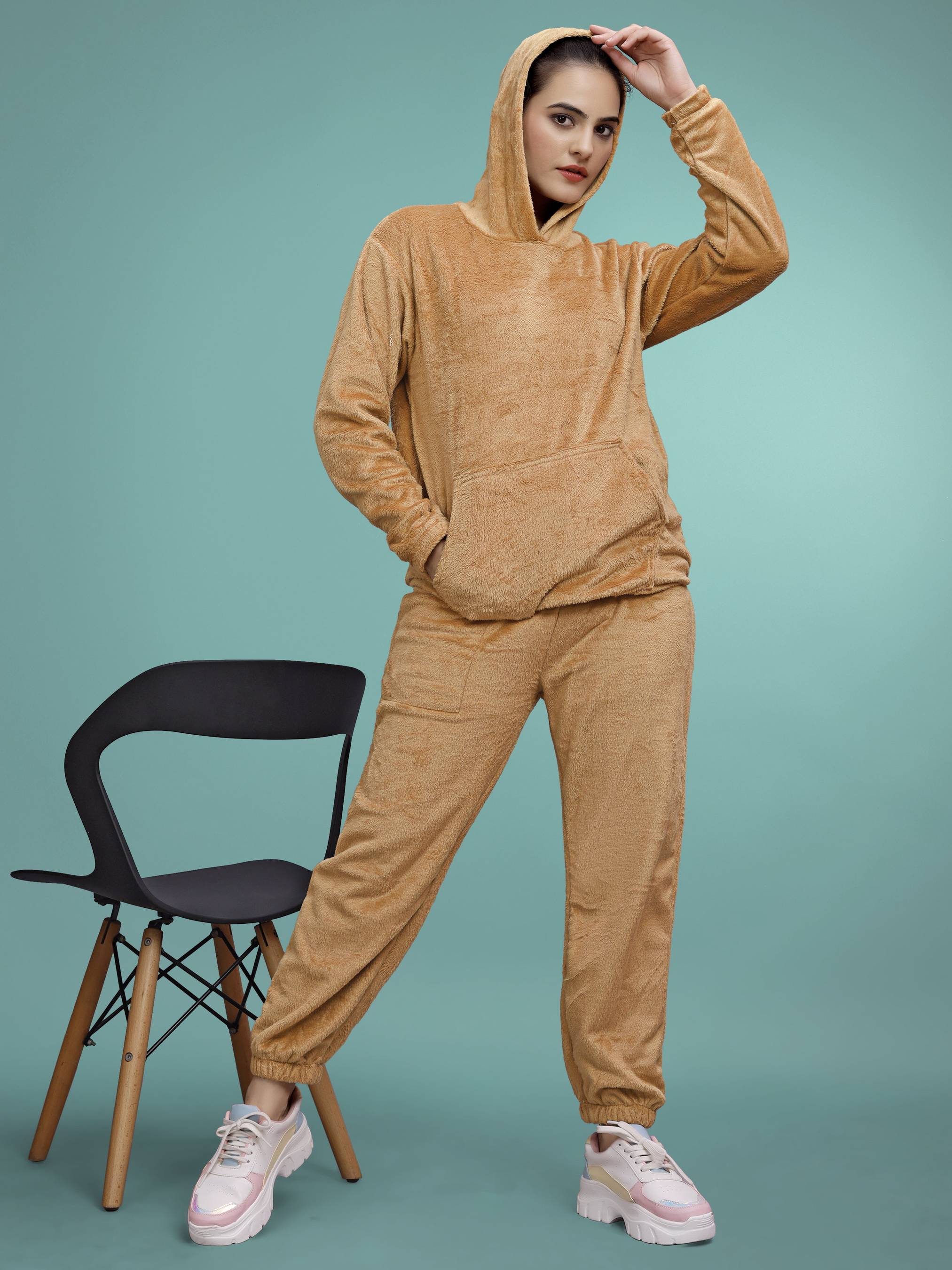 Stay cozy and stylish this winter with our Women's Winter Wear Co-Ord Set, crafted from a luxurious blend of fleece and wool for unmatched softness and warmth. This versatile set includes a top and bottom designed for ultimate comfort, featuring a convenient side pocket for small essentials like keys or your phone. The elasticated waistband with heavy stretch on both sides and an adjustable drawstring ensures a perfect fit. Whether you're lounging at home, traveling, practicing yoga, working out, attending parties, or even using it as chic sleepwear, this co-ord set effortlessly combines functionality and elegance to suit every occasion.