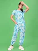 SAKARMAA Women Ombre/Dyed White, Blue Top & Pyjama Set