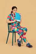 A:This stunning co-ord set is crafted from premium stretchable polyester-based fabrics, ensuring both quality and comfort. Adorned with a vibrant digital print.