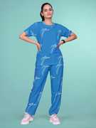 SAKARMAA Women Top & Pyjama Set Light Blue Printed
