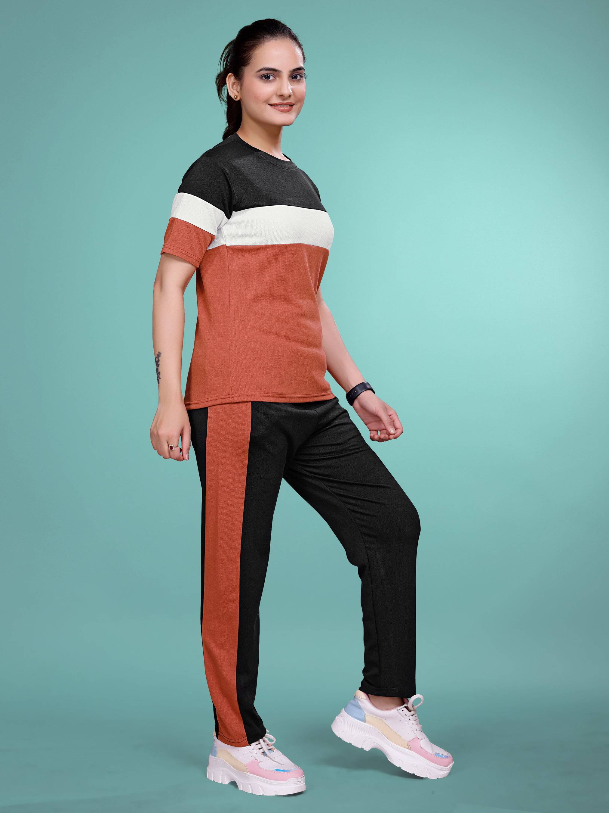 It sounds like this pair of Night Suits/Track Suits/Co ords/Night Dress/Gym Suits is made of Polyster Lycra hosiery fabrics and includes ankle-length bottoms with a fold, both side pockets, heavy stretch elasticated on both full sides, and a drawstring at the waist. This versatile pair can be used for a variety of activities such as sleeping, lounging at home, traveling, practicing yoga, working out at the gym, going out, or even as a coordinated outfit for parties. Polyester Lycra hosiery fabric is a type of fabric that is lightweight, stretchy, and comfortable to wear. The ankle-length bottom fold adds a stylish touch to the overall design, while the both side pockets provide a convenient place to store small items such as keys or a phone. The heavy stretch elasticated on both full sides ensures a comfortable and secure fit, while the drawstring at the waist allows for easy adjustment. Overall, this pair of Night Suits/Track Suits/Co ords/Night Dress/Gym Suits seems like a versatile and comfortable option for a variety of activities and occasions.