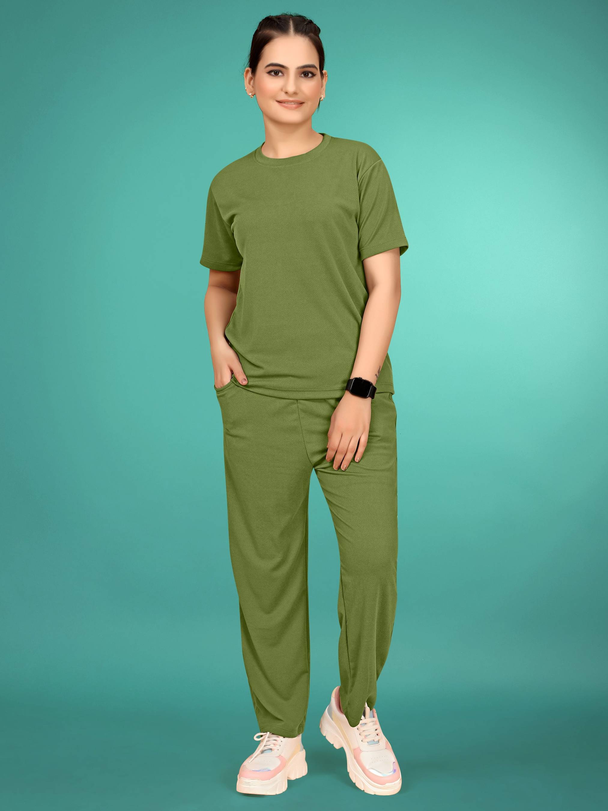SAKARMAA Women Top & Pyjama Set Green Solid