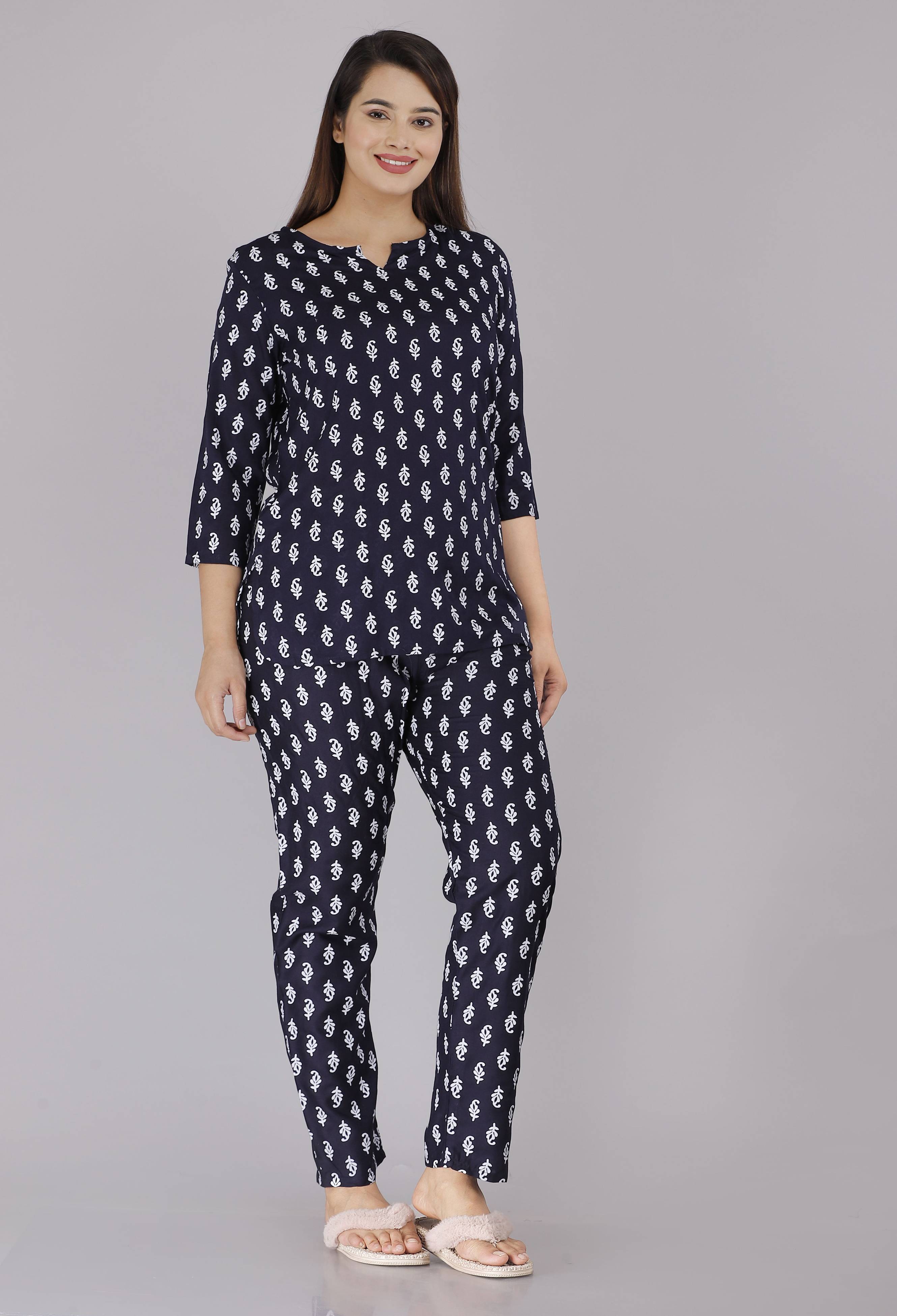 SAKARMAA Women Solid Grey Top & Pyjama Set