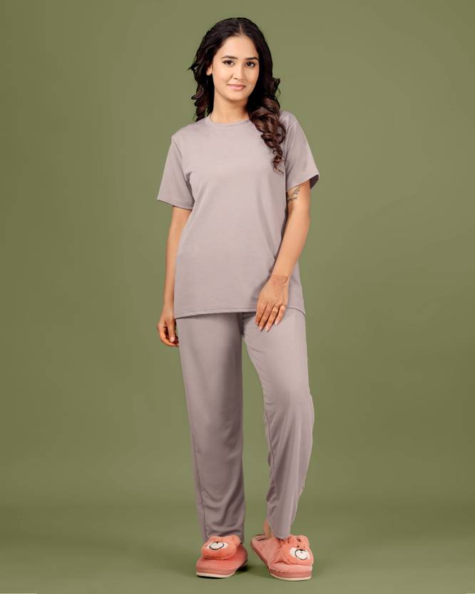 SAKARMAA Women Top & Pyjama Set Grey Solid