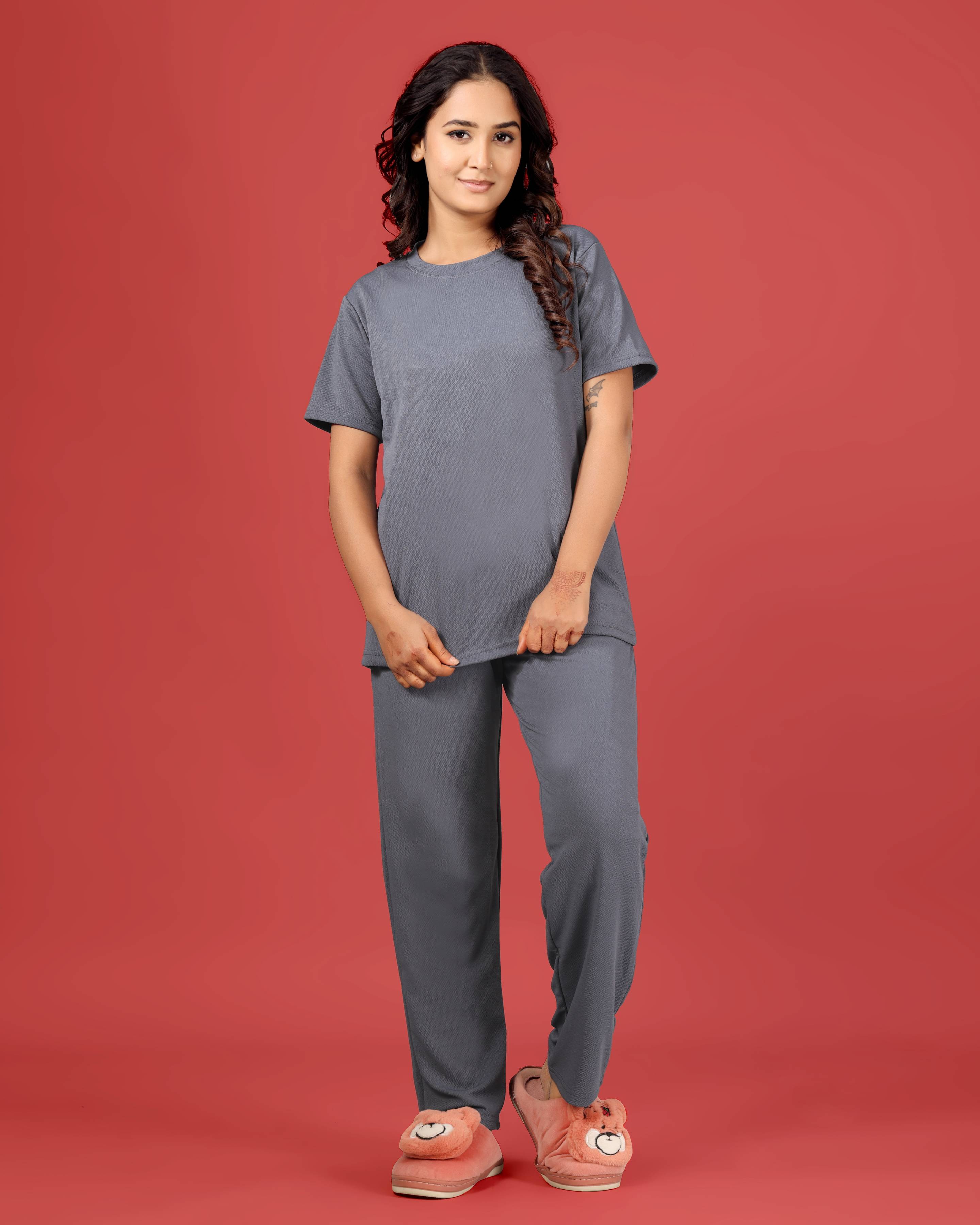 SAKARMAA Women Top & Pyjama Set Grey Solid