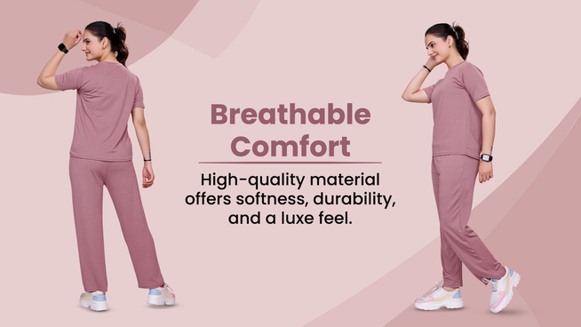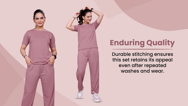 A: This stunning co-ord set is crafted from premium stretchable polyester-based fabrics, ensuring both quality and comfort.