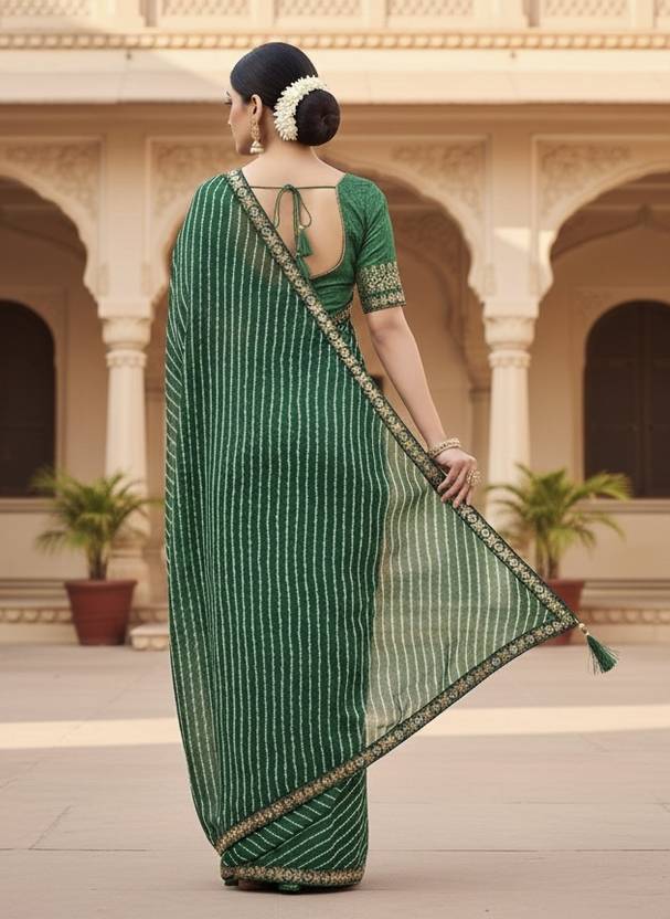 Printed Leheria Georgette Saree (Green)
