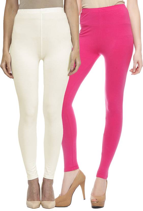 Ethnic Wear Legging (White, Pink, Solid)