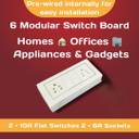 Sakib 6 Modular Wall Mounted Switch Board 2 Socket Extension Boards (White, 10 m)