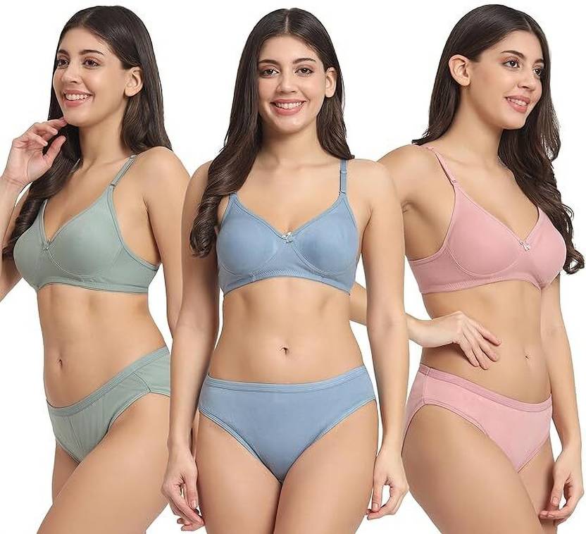 romantic bra panty, Lingerie set is a must-have for your everyday lingerie drawer. Crafted from the soft Cotton blend fabric ensures comfort fit and freedom of movement all day long For the woman who appreciates attractive styling but doesn't compromise on ease of wear, fit and hygiene. Fresh vibrant lively colors and romantic design is meant for everyday wear. Its light elastic doesn't leave marks on your skin. This is made of breathable, light fabric to provide best comfort and fit., 100% Imported fabric to give you rich look that you deserve , Honeymoon, beach Wear Bra Panty set, swimwear bra panty set. Pack of 3 Bras and 3 Panties