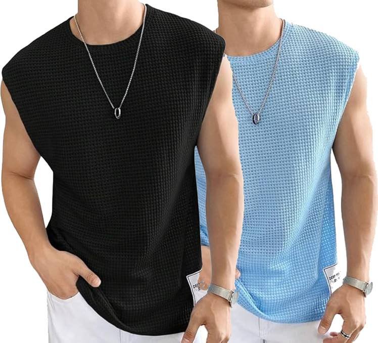 Men's Round Neck Waffle Tank Tops Sleeveless Polycotton T-Shirt for Gym, Running and Outdoor Vest