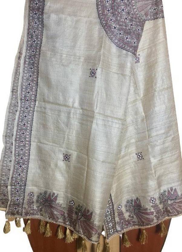 Silk Dupatta Madhubani Painting (190x 90 cm / 1.95 x 0.9 M Multicolour) ?Very Intricate Original Madhubani Painting on Tasar Silk ?Perfect for Gifting / party wear / look Awesome, Elegant and Beautiful ?Size: 190 x 90 cm / 1.9 Meter x . 9 Meter