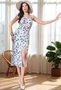 bodycon midi dress featuring a stylish bust cut-out and a bold thigh-high slit. Crafted from a premium stretchable polyester blend, it hugs your curves while allowing easy movement. The ruched detailing at the bust, sleeveless cut, and sleek silhouette make it the perfect choice for cocktail parties, romantic dinners, and upscale evening events. Pair it with heels and statement jewelry for a look that turns heads.