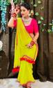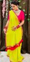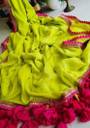 Salco Solid/Plain Banarasi Georgette Saree (Yellow, Pink)