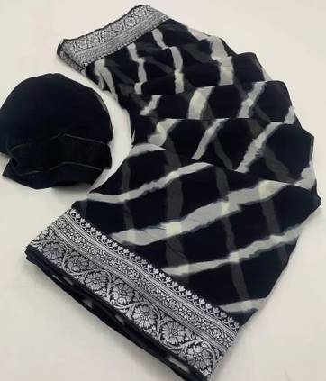 Salco Striped Bollywood Georgette Saree (Black)