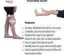 Salo orthotics push knee extension (corrector) splint is used to release flexion contracture to prevent buckling of the knee and to stabilize or fix it. Also used post-operatively. Works to treat joint stiffness and improve range of motion. Also useful in arthritis. Features: Can reduce rehabilitation time, which is a cost savings Comfortable, safe and easy for patients to use Adjustable Velcro strap for easy adjustment Suitable for skin contact, does not absorb perspiration Does not support micro organisms growth Washable, odor free, tough, resilient and light weight Used post-operatively Works to treat joint stiffness and improve range of motion.