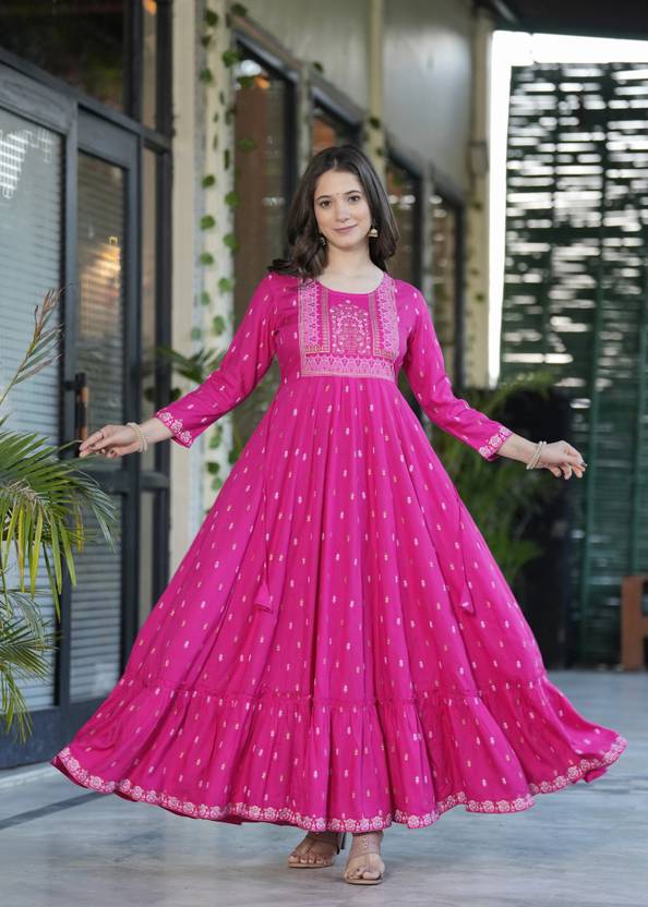 saloni creation Women Printed Anarkali Kurta (Pink)