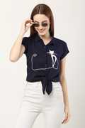 SALONI STYLE Casual Printed Women Dark Blue Top