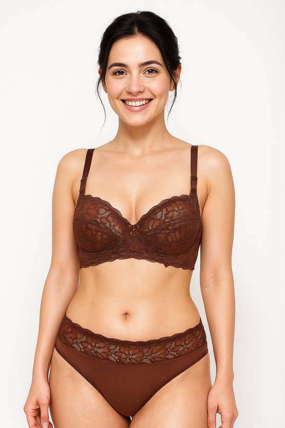 Salsa Women’s Lace Bra & Panty Set | Non-Padded Non-Wired Everyday Lingerie |Adjustable Straps | Coffee