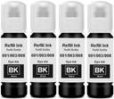 Salty 003,001 Refill Ink for L3110,L3150,L3250,L3252,L3115,L3116 Printer Pack of 4 Black Ink Bottle