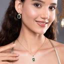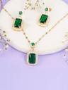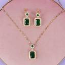 The matching earrings complete the set, designed to complement the necklace with their graceful drop and sparkling emeralds, offering a perfect balance of style and opulence. Ideal for weddings, festive occasions, or any special event, this jewelry set is sure to make you the center of attention.