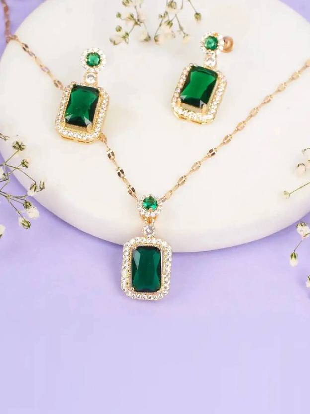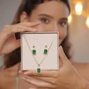Perfect gift for Valentines Day, Birthday, Anniversary, or Special Occasions., High-quality 18K gold plating, Eye-catching green emeralds, Necklace and matching earrings