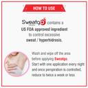 Hyperhidrosis or excessive sweating can be effectively treated by using the roll-on continuously for some days. After washing the area thoroughly with mild soap, you may pat it dry completely. The roll-on can then be applied in gentle strokes on the sweat-prone area. The application has to be left on overnight to have a maximum effect. After applying it every night for some days, you can observe the changes and reduce to applying it twice or thrice a week as preferred.