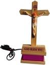 salvusappsolutions Sacred Glow: Wooden Jesus Cross Idol with Light (Multicolor_5x8 Inch) Decorative Showpiece - 20 cm (Wood, Brown)