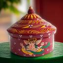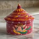 This Women's Wooden Big Round Ganesh Print Sindoor Box is the perfect blend of tradition and style for your pooja space. Measuring 8x6 inches (20 cm) and crafted from high-quality wood, this large sindoor box features a vibrant multicolor Ganesh print, making it an elegant addition to your home décor. Ideal for storing sindoor during religious rituals, this sindoor dibbi adds a spiritual touch to your pooja mandir or prayer room. The beautifully designed sindoor Ganesh box can also serve as a unique decorative showpiece in your living room, enhancing the aesthetic of any space. It is especially suited for use during marriage rituals or as a thoughtful gift for newlyweds. Whether you're looking for a wooden sindoor box for your daily rituals or as a special gift, this piece is sure to impress. Celebrate tradition and bring positive energy into your home with this stunning sindoor box for marriage or any festive occasion.