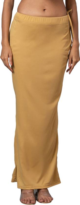 Beige colour saree shaper has drawstring closure & side slit. Light weight and is suitable for all types of sarees. It is made from stretchable and breathable fabric that provides seamless shaping and compression on the stomach, thigh and rear areas, giving you a flattening look, and making you feel stress-free