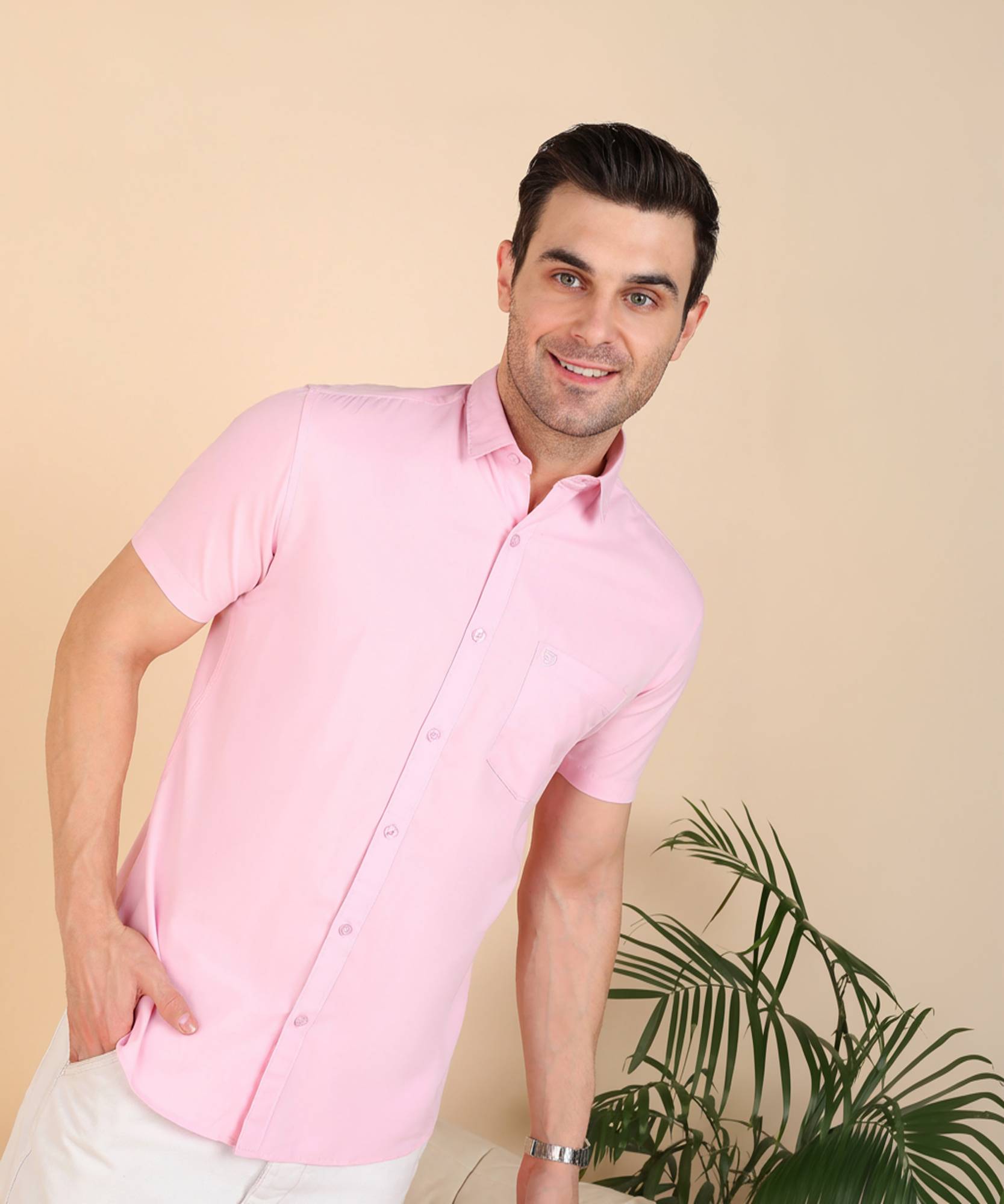 SAM & JACK Men Solid Casual Pink Shirt